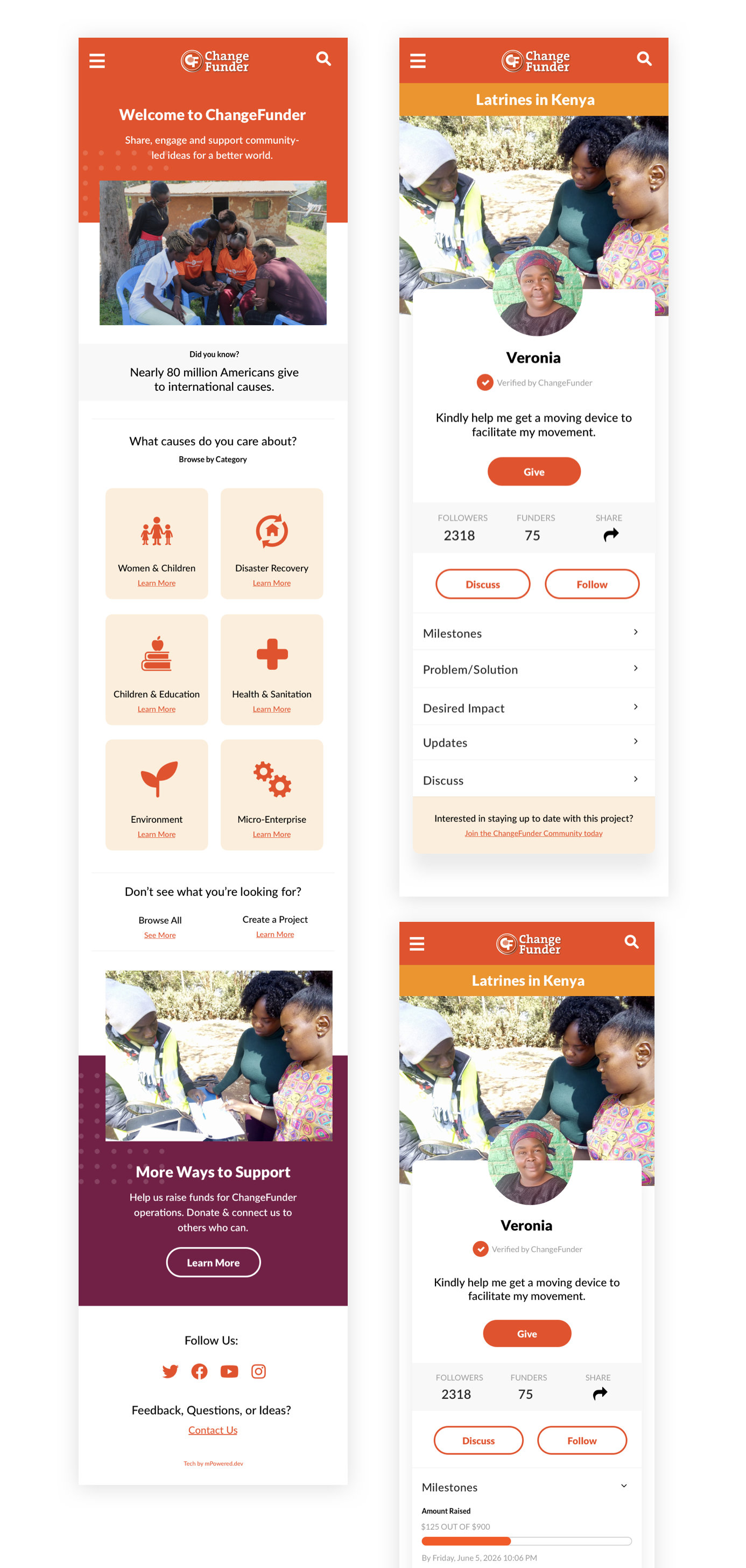 ChangeFunder's mission is to provide a better way to share, engage, and support community-led ideas for a better world. This is done by using technology to empower community leaders to share their ideas and needs, and connect them to benevolent individuals willing to support them.